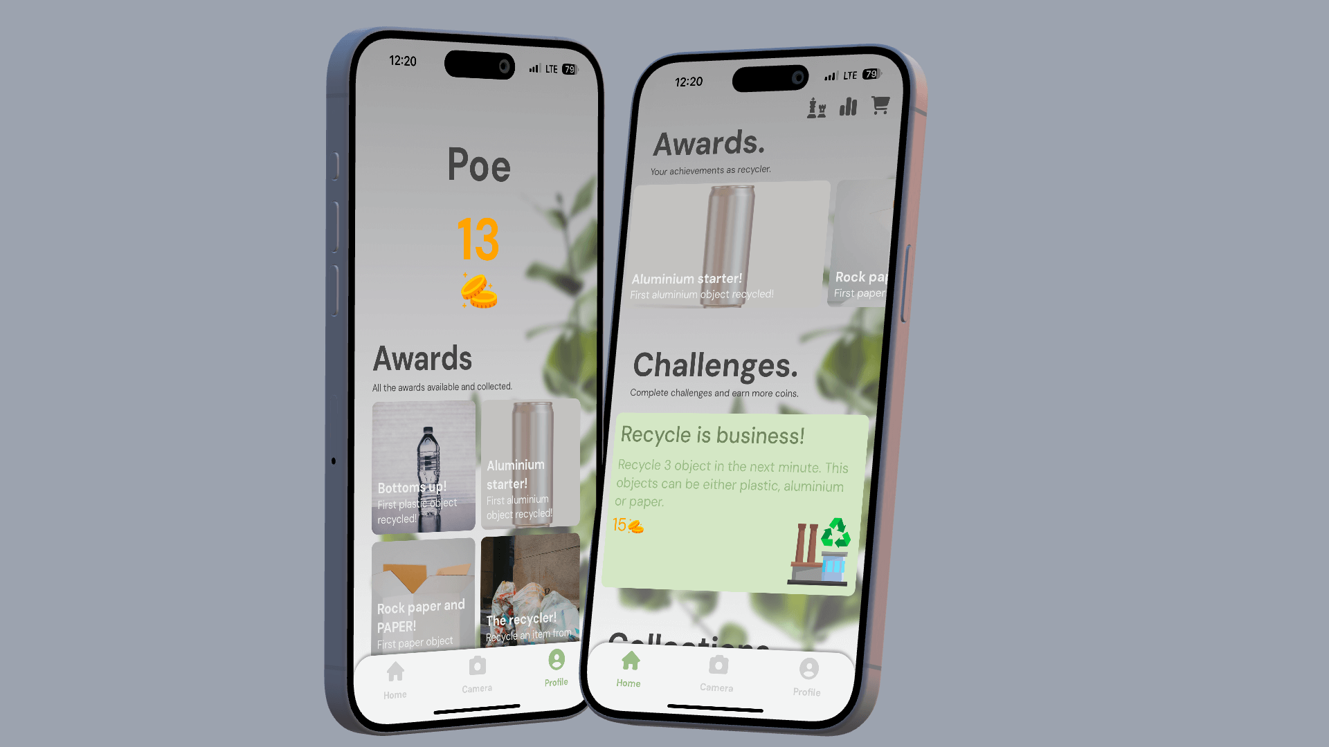 Gamified recycling platform where users earn coins for eco actions, unlock badges, join challenges, track personal impact, and climb leaderboards with real-time profiles and secure accounts.